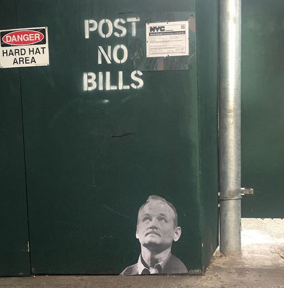 Bill Murray aktorea da 'Post no Bills' stencilaren irudia. Ea zenbat irudi paratu dituen galdetuta, barrez dio ez dakiela, azken aldian 50 jarri zituela, baina dela 4 urte hasi zen 'Post no Bills'-ekin.