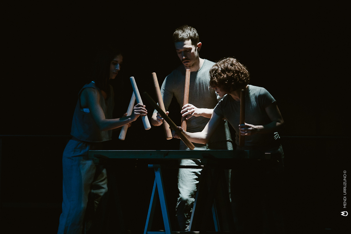 J.M. Bai, nik uste prozesu artistiko osoan txalaparta eta alternantzia asko egon direla: esate batera, zuzendaritza artistikoan Jesus eta biok aritu gara, konposizioan Aitor Beltranen txalapartaren zuzeneko lan guztia dugu, Aitor Etxebarriarekin, musika elektronikoan aritzen den konpositore batekin, uztartuta. Mekanika hau asko errepikatu zaigu. Niretzat oso ederra izan da bi Aitorrei planteatu genienean konbinazio hau; alde batetik izatea jatorrizko iturri hori, baina aldi berean gaur egungo elementu garaikide gisa tratatuz, eta egungo beste elementu garaikide batzuekin uztartzea, musika elektronikoa den bezala. Bien arteko konposaketa hori, batzuetan bakarka, besteetan elkarrekin batak besteari pausoa emanez, oso erakargarria zen, eta biek gustu handiz hartu zuten ideia hori. Ni bereziki oso gustura nago daukagun musikarekin, eta ikuskizun honetarako musika esparrutik egin den lanketa guztiarekin.